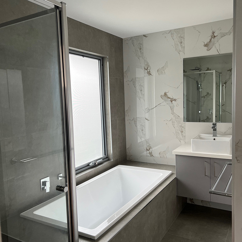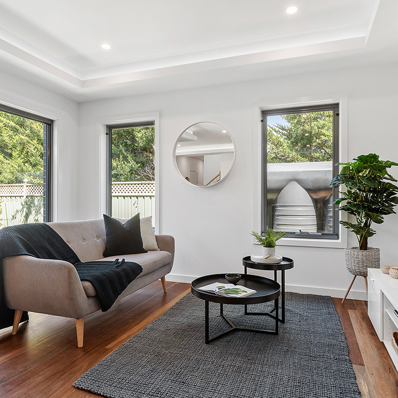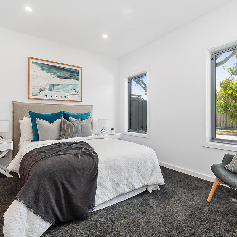 This construction consists of brick veneer ground floor, with robust composite light weight cladding to the first floor. A contemporary coastal design with the emphasis on high-quality finishes to all aspects. Comprising of solid timber floors, floor to ceiling tiles, stone tops & a large entertaining area. This development was designed with the empty nester in mind by having the main living areas & the master bedroom on the ground floor.