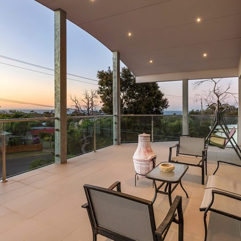 This construction consists of solid brick veneer ground floor & is complemented with stonework to the front fascade. The use of large exposed galvanized steel columns was used to accentuate the large balcony area. The first-floor roof structure comprises of curved timber trusses to complement the coastal feel. The roof is finished in a durable colour bond metal to resist the elements.